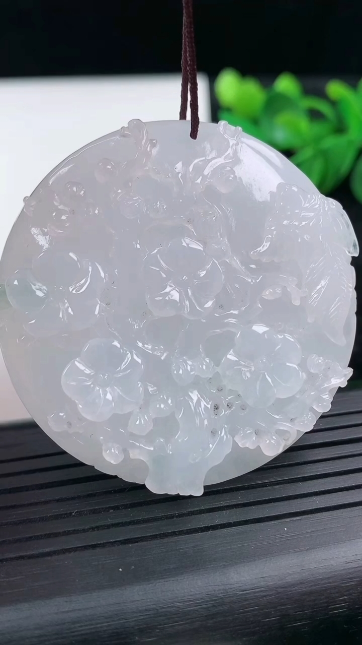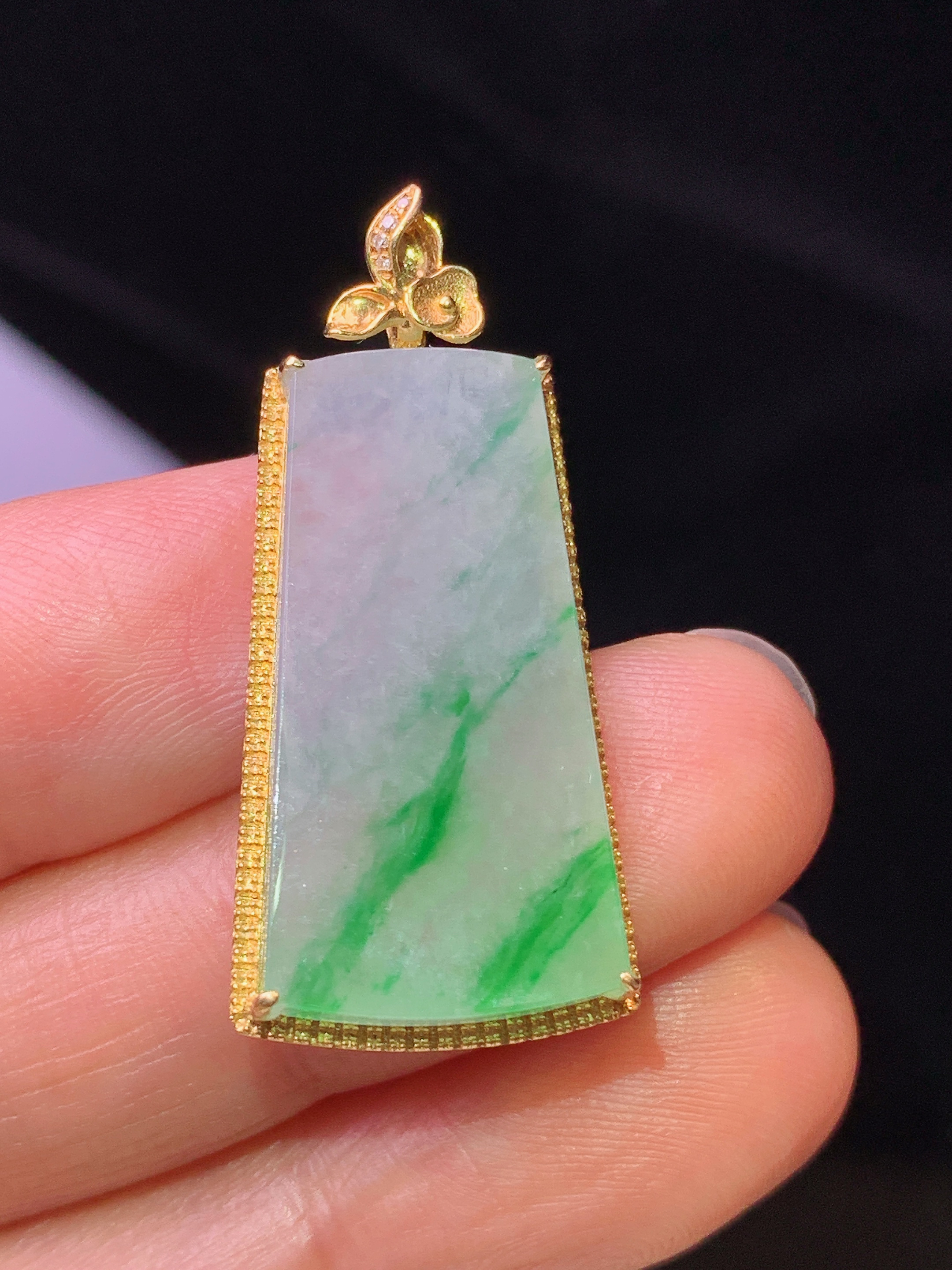 18k金钻镶嵌飘绿无事牌吊坠 玉质细腻 色泽艳丽 整体尺寸33.3*15.3*3.2j1