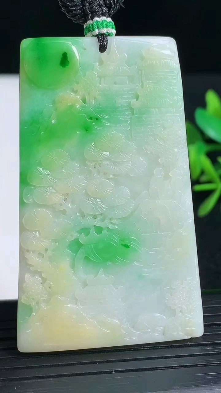 天然A货翡翠山水牌吊…