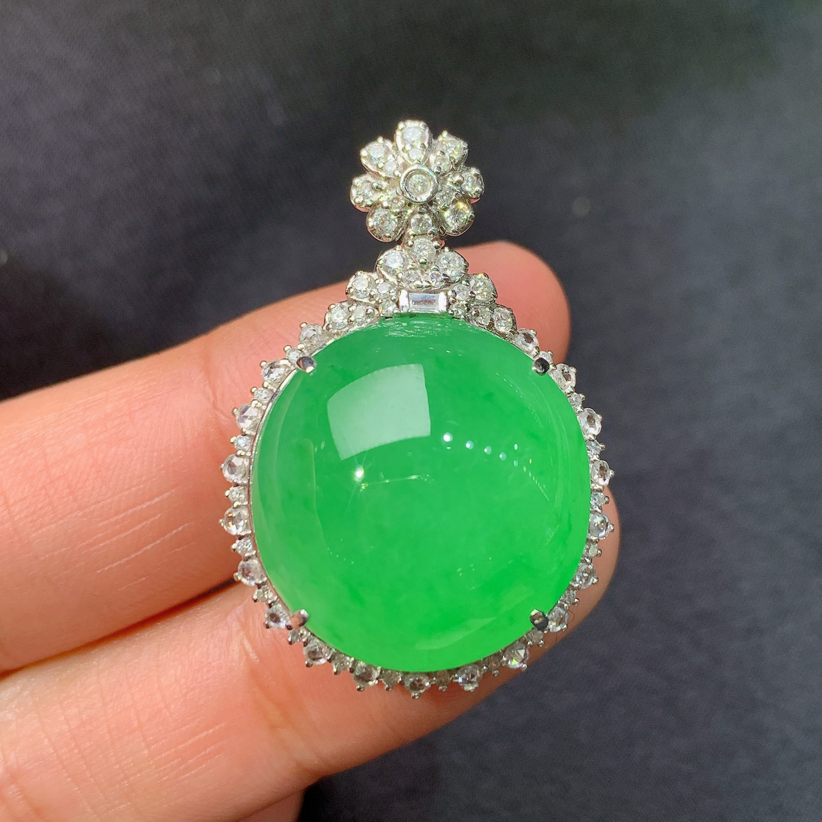 翠绿蛋面吊坠,18k金镶嵌,色泽鲜阳,冰润细腻,种水足,Lp 32.9*22.9*13.6
