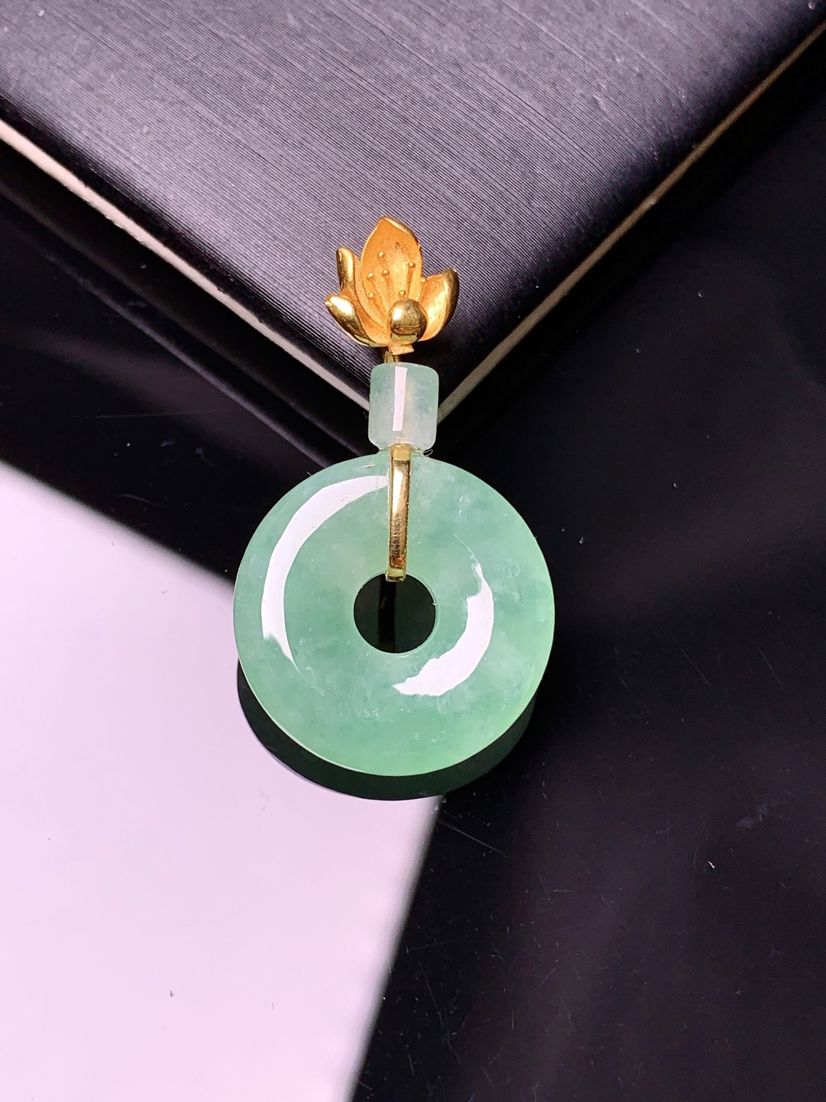 18k金钻镶嵌翠绿平安环吊坠 玉质细腻 色泽清新艳丽 yz整体尺寸30*17.2*4.2
