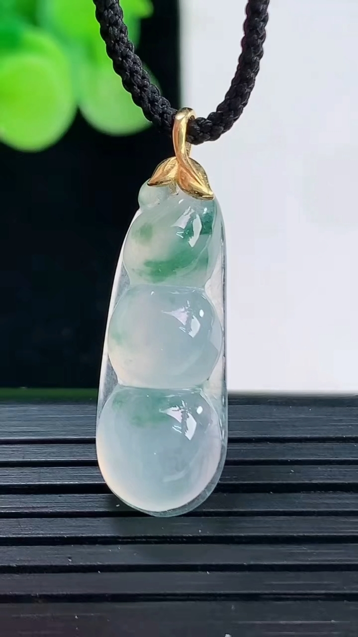 天然A货翡翠种飘花福豆吊坠尺寸31.7-10-5.8重量:2.92g 4月7日