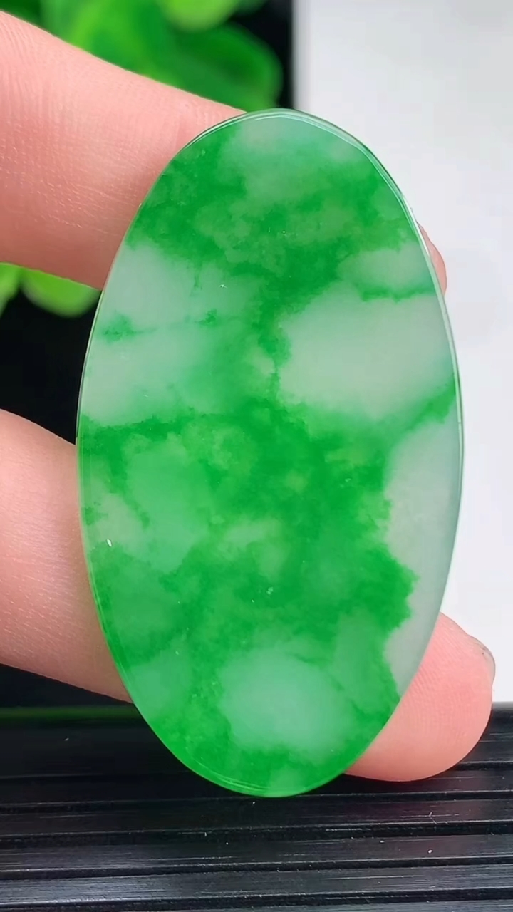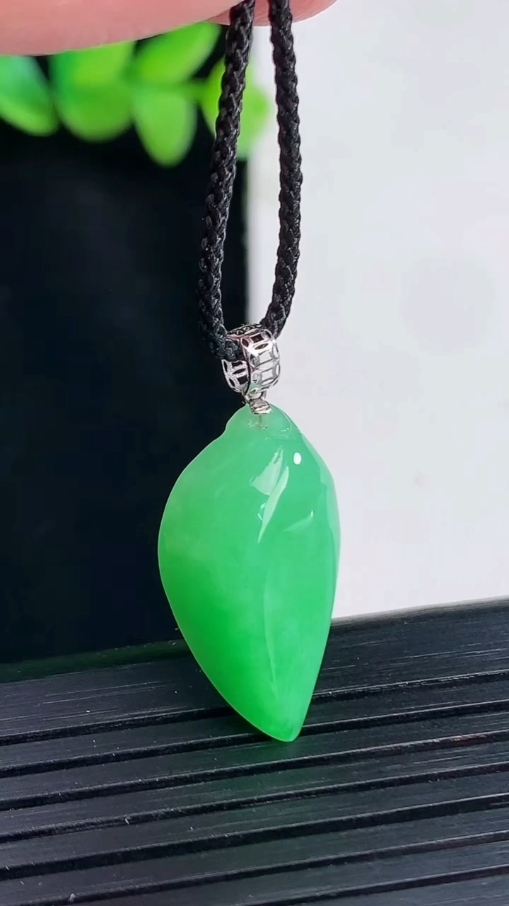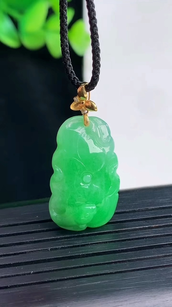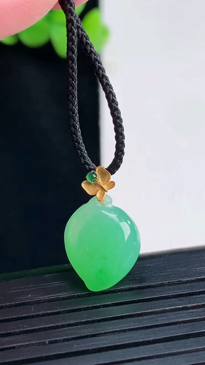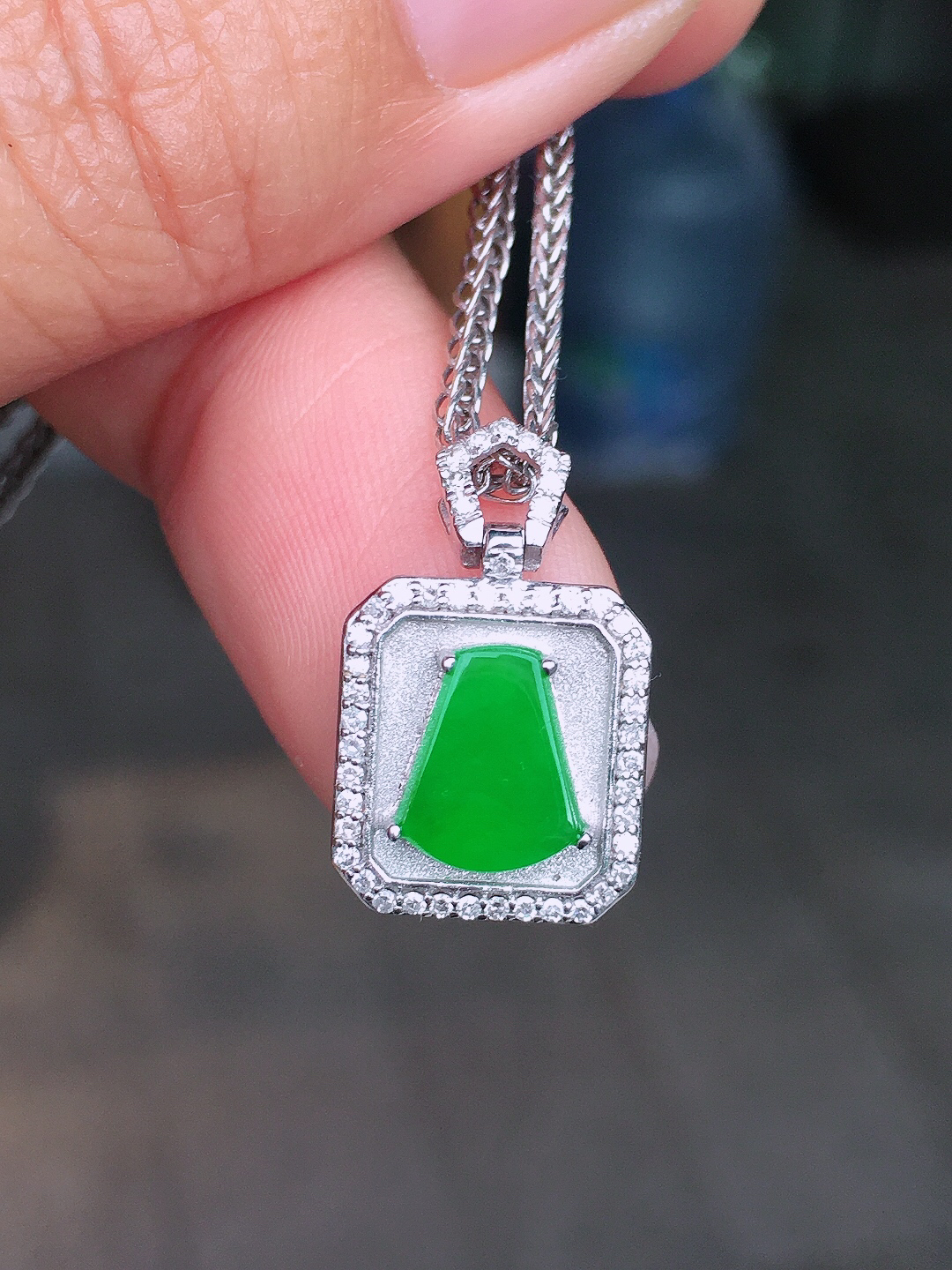 冰种阳绿平安无事牌吊坠、真金真钻镶嵌,种水好,玉质细腻 .裸石尺寸 38.0*22.0‘