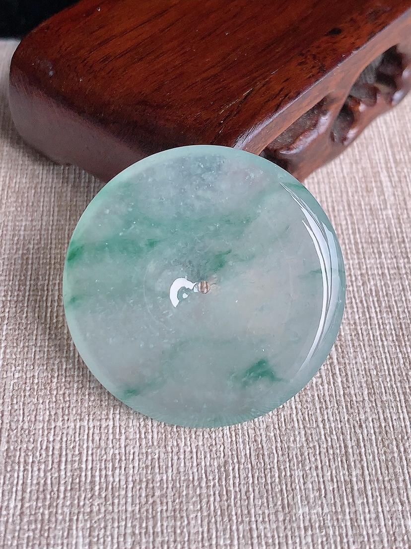 天然A货翡翠种飘花平安扣吊坠尺寸27-5重量:7.81g 4月16日