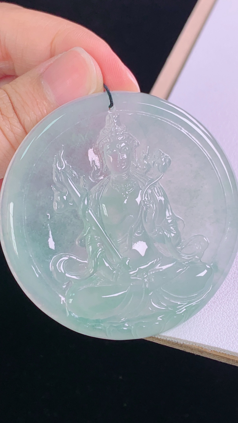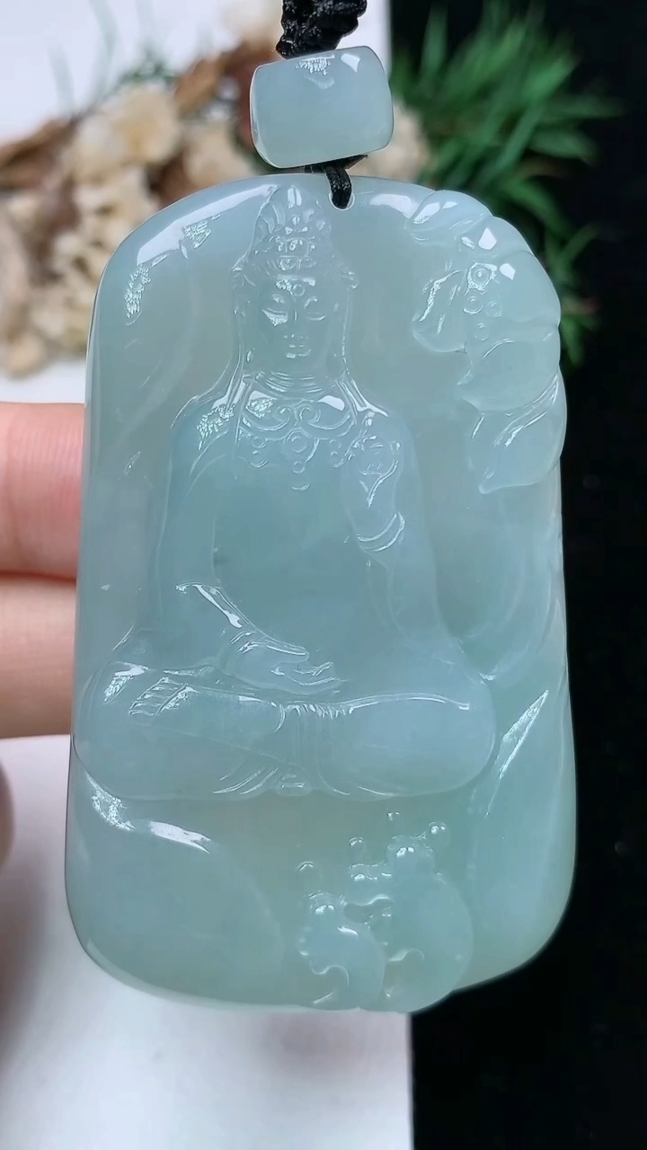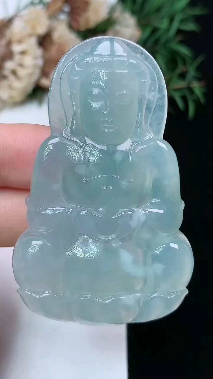 天然A货翡翠紫罗兰观音菩萨吊坠尺寸52.4-32-5.5重量:17.09g 4月15日