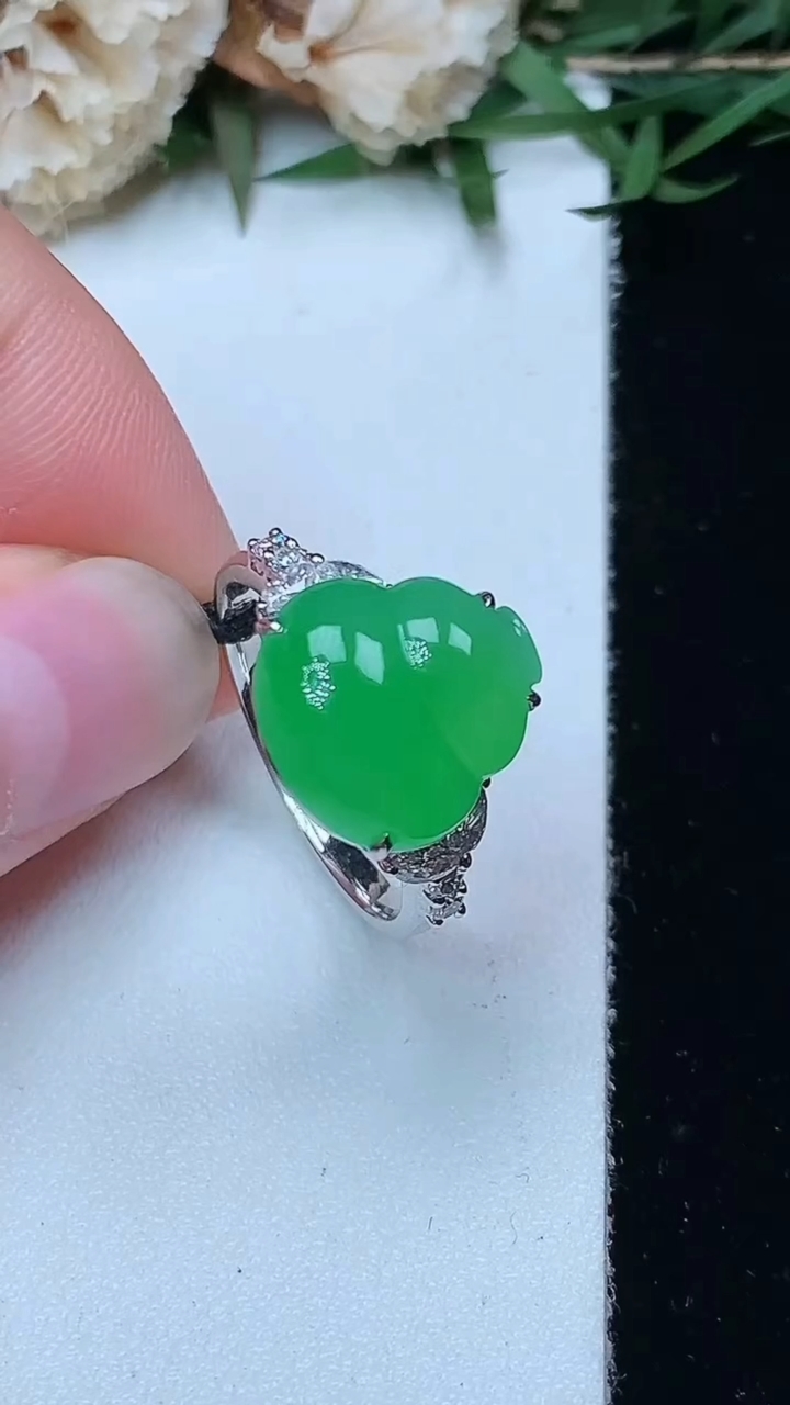 冰飘绿葫芦吊坠,18k金镶嵌,冰润细腻,色甜,种水足,Yt 尺寸21.2*12.7*6.6