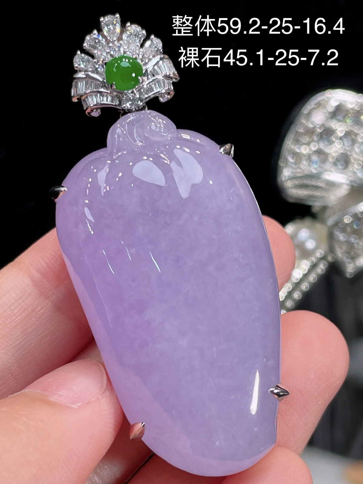 天然缅甸翡翠A货 紫罗兰福瓜吊坠 18k金镶嵌钻石 细腻水灵 实拍接近