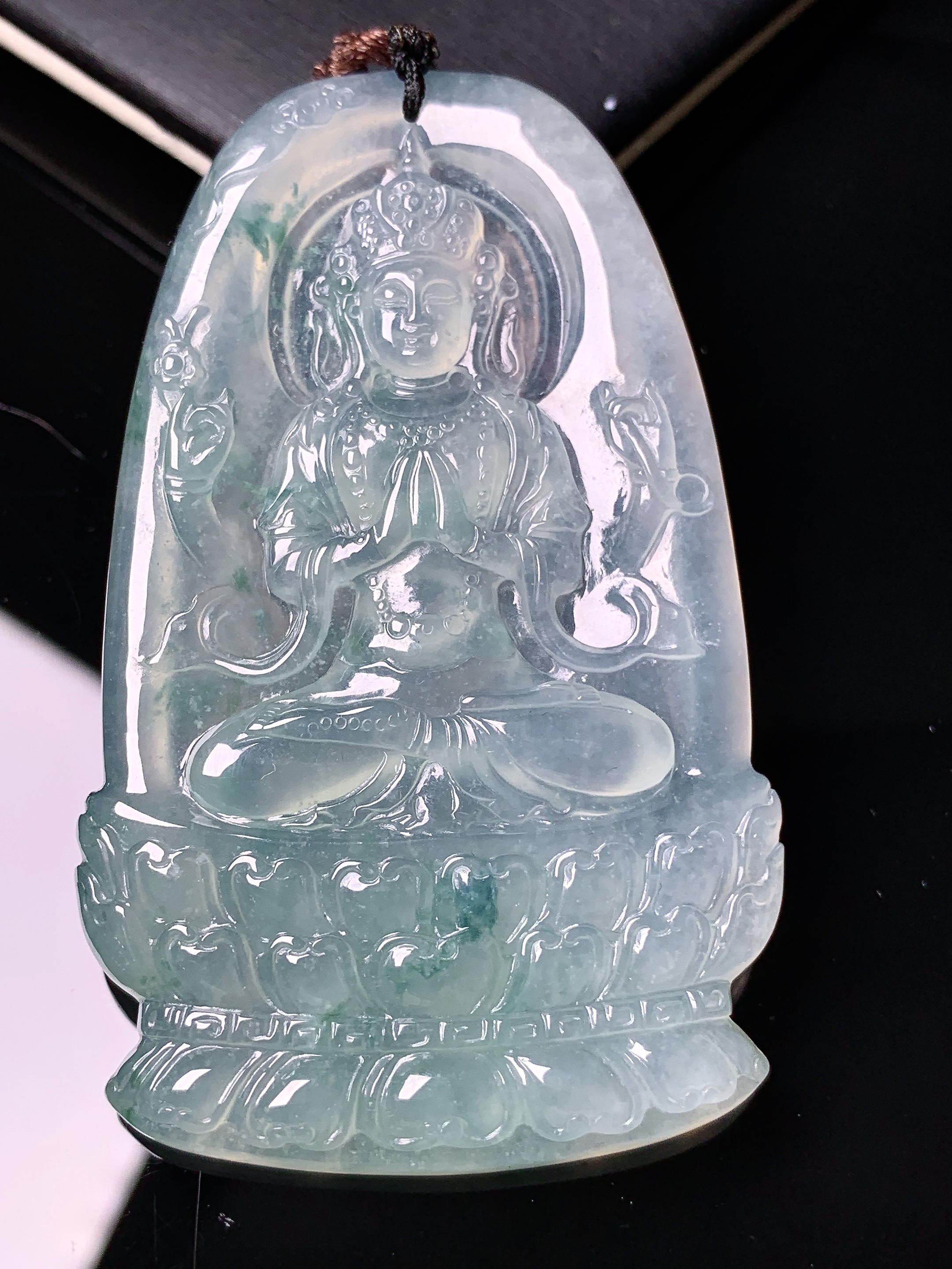冰种度母观音菩萨吊坠 玉质细腻 色泽艳丽清新 水润亮眼 整体尺寸66.3*40*5.8b2