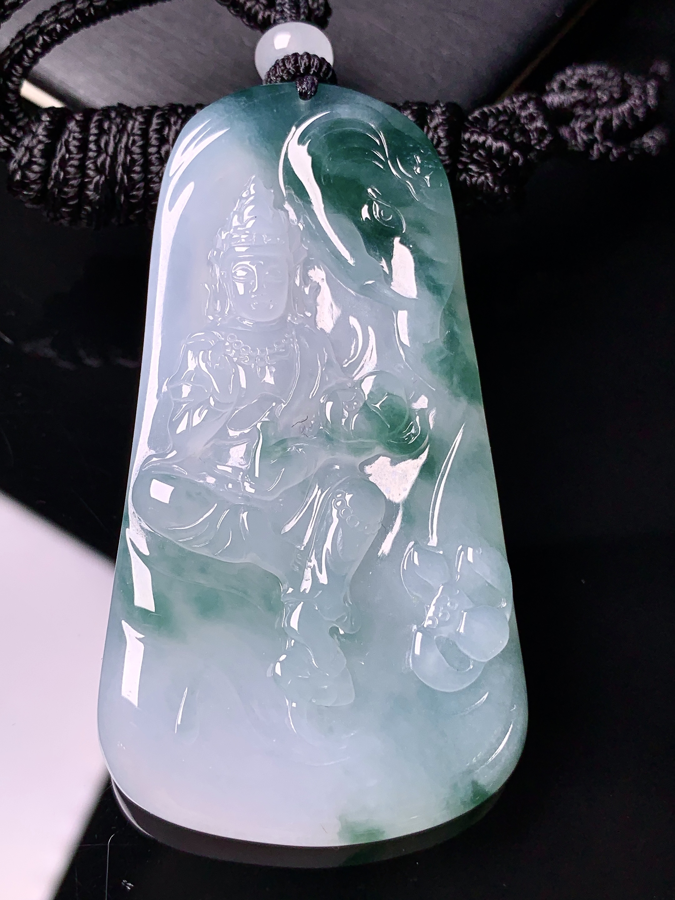 飘绿观音菩萨吊坠 玉质细腻 色泽艳丽清新 水润亮眼 整体尺寸61.5*33.2*6L1