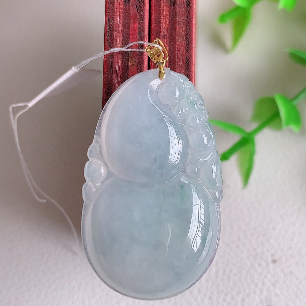 18k金扣冰润葫芦翡翠吊坠 寓意“福禄双全,加官进爵,财源滚滚” 莹润通透,抱满大气 清新脱俗