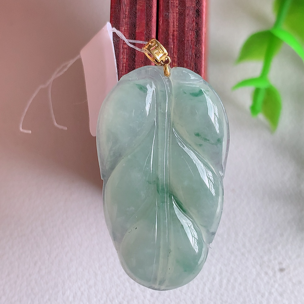 18k金扣冰润飘花金枝玉叶翡翠吊坠 老种起胶感 飘花灵动 寓意“金枝玉叶,大业有成,一夜成名”