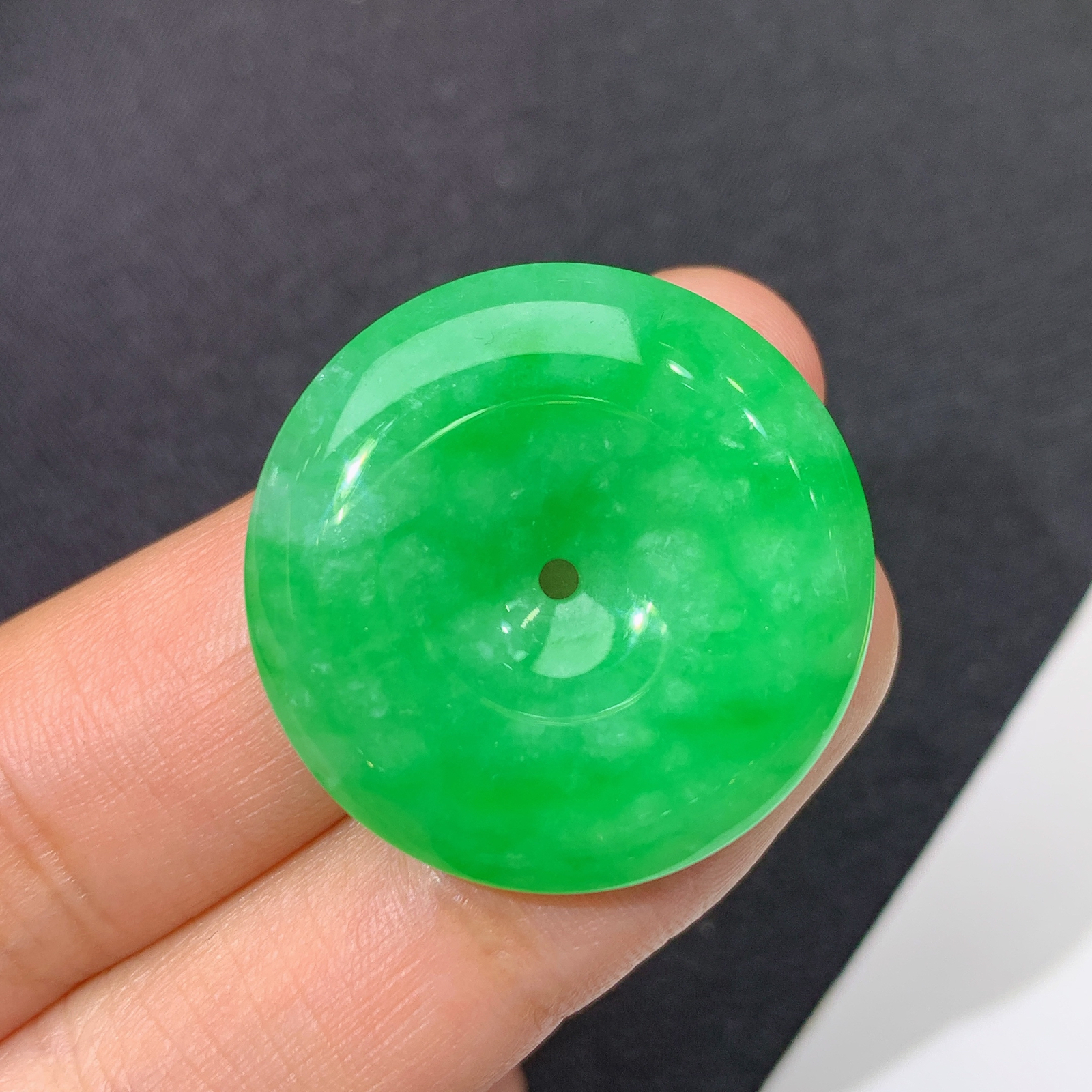 阳绿平安扣,冰润色阳,玉质细腻,种水足 Hon 尺寸26.3*5.3