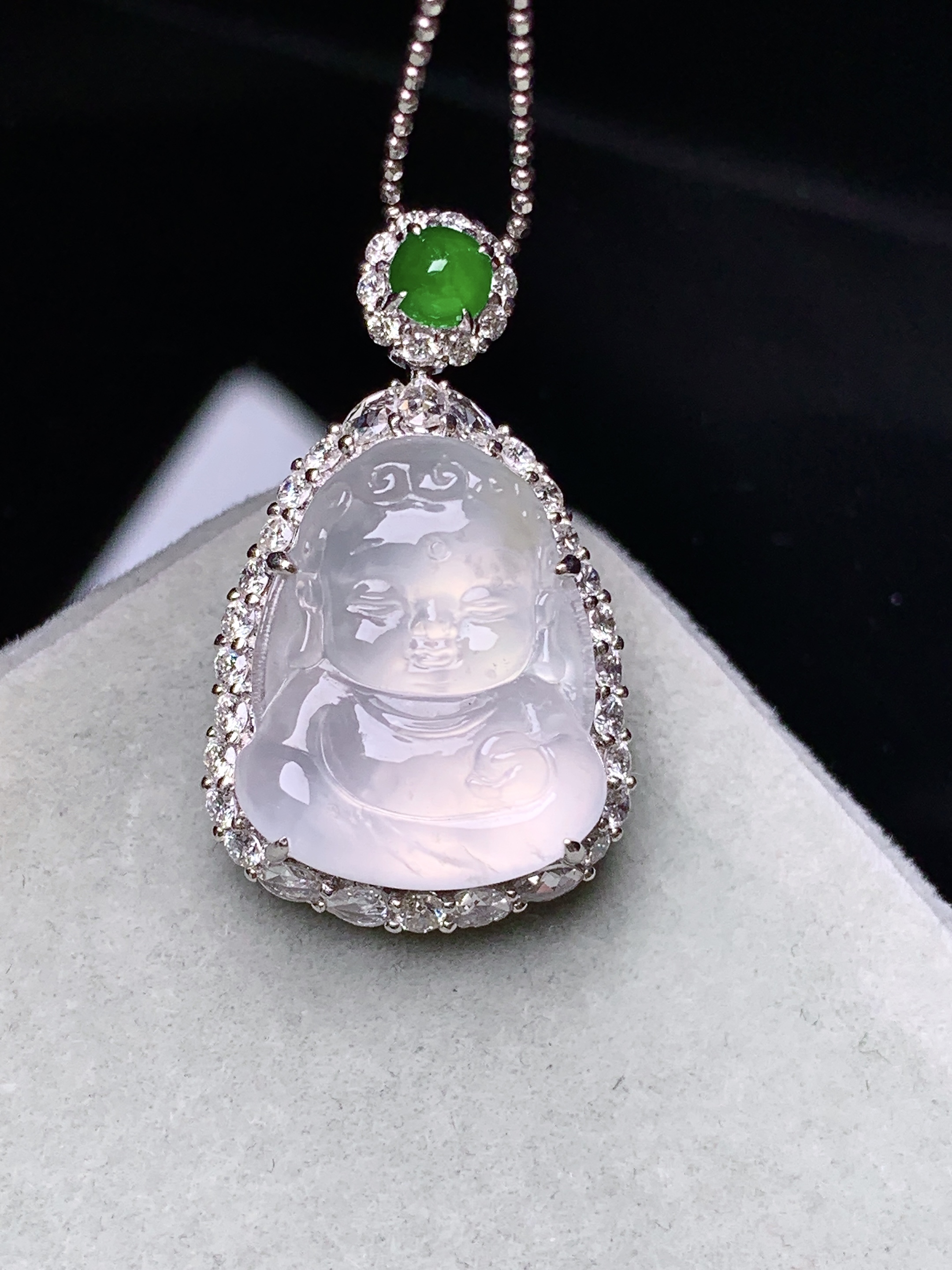 18k金钻镶嵌冰种宝宝佛公吊坠 玉质细腻 水润亮眼 色泽艳丽 整体尺寸28*16.8*9.8m5