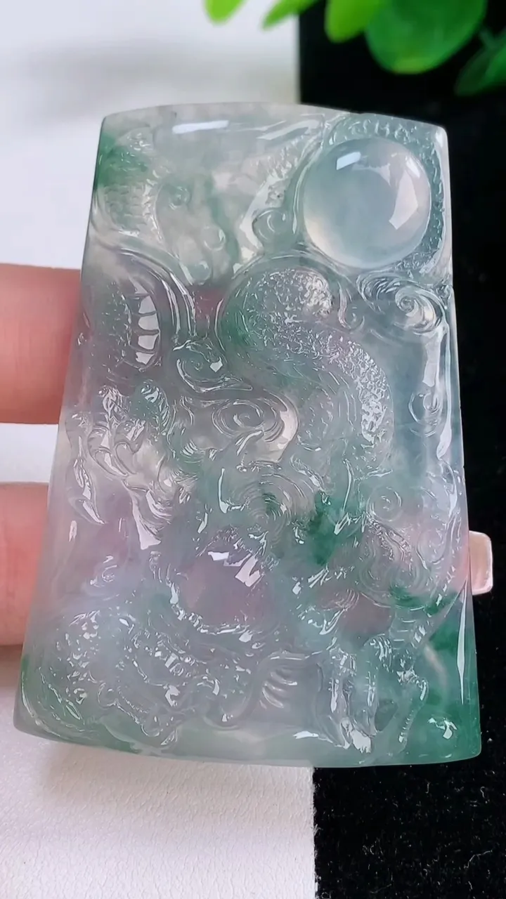 天然A货翡翠龙牌吊坠,尺寸70-46.6-10.3,重量:79.25g 12月7日
