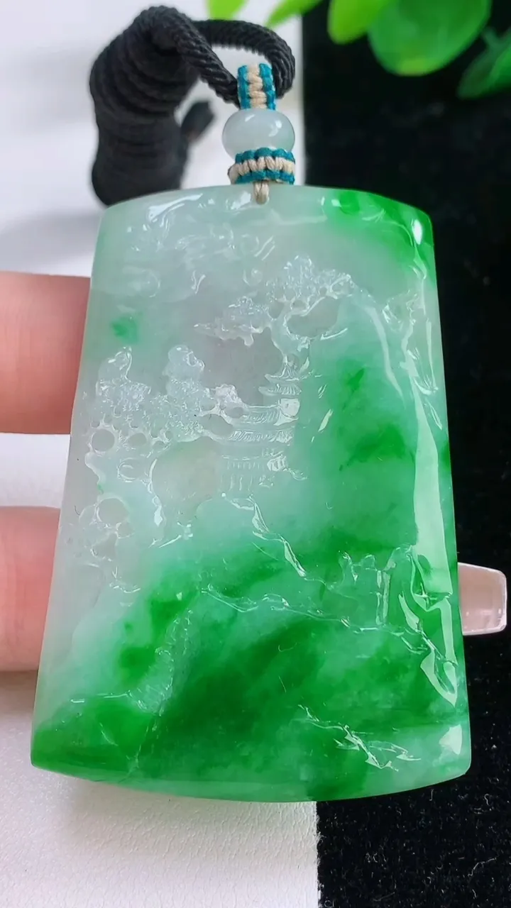 天然A货翡翠山水牌吊坠,尺寸58.6-40-4.7,重量:30.23g 12月7日