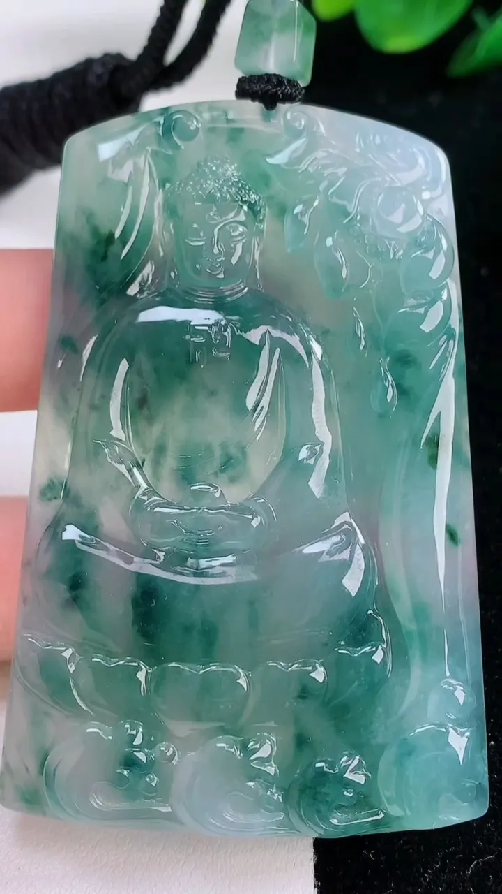 天然A货翡翠种飘花大日如来吊坠,尺寸67.5-43.8-5.6,重量:48.52g 12月7日