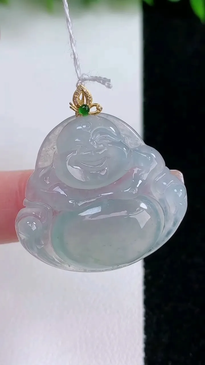 天然A货翡翠种飘花佛公吊坠,尺寸27.7-30.8-5.7,重量:7.82g 1月24日