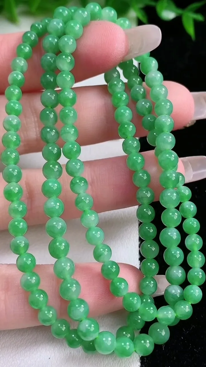 天然A货翡翠圆珠项链,尺寸4.2-128颗,重量:20.76g 1月24日