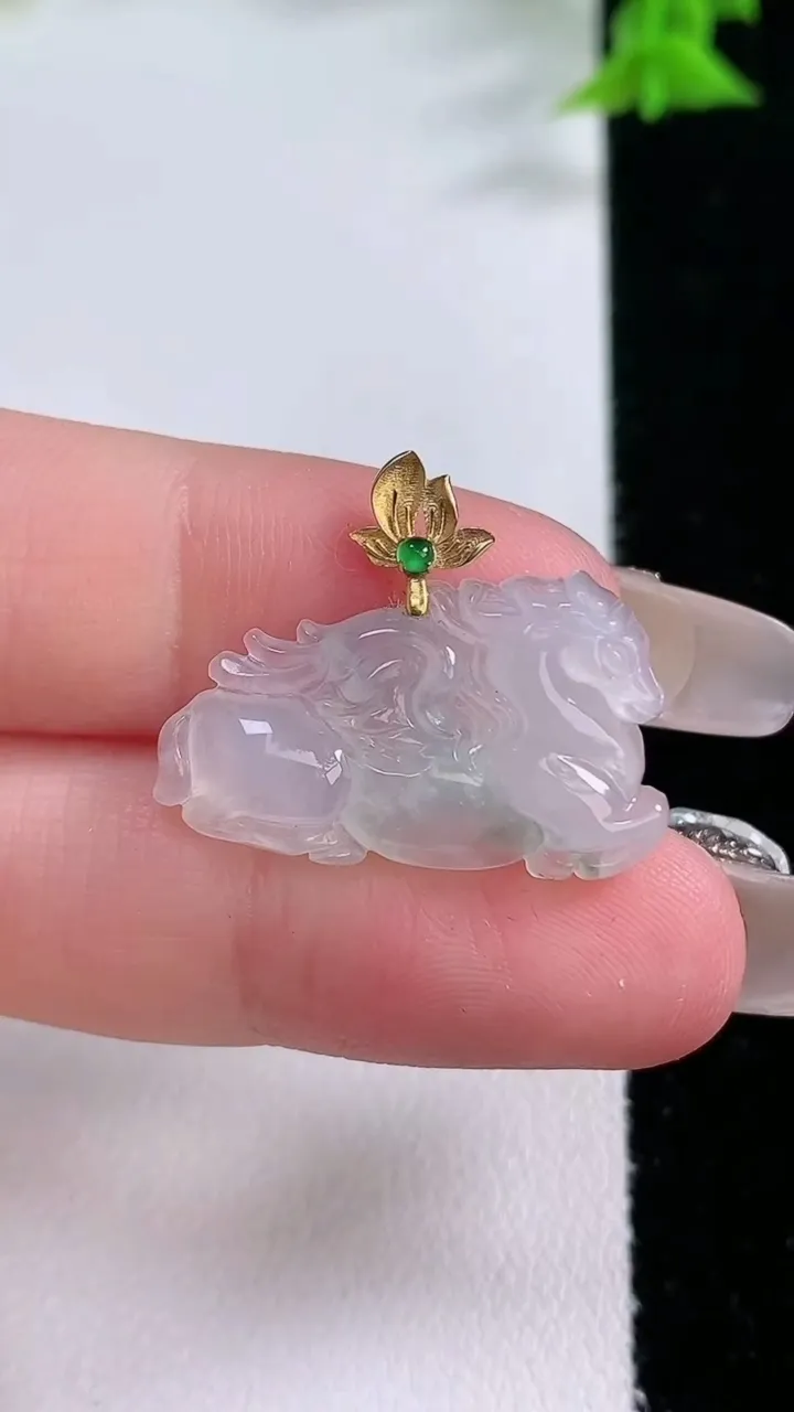 天然A货翡翠生肖马吊坠,尺寸14.2-25-3.7,重量:2.60g 1月27日