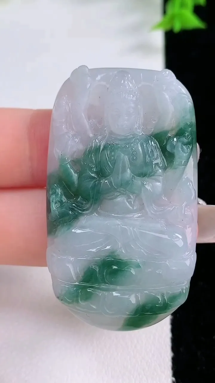 天然A货翡翠飘花千手观音吊坠,尺寸48-27.8-5.7,重量:16.31g 1月27日
