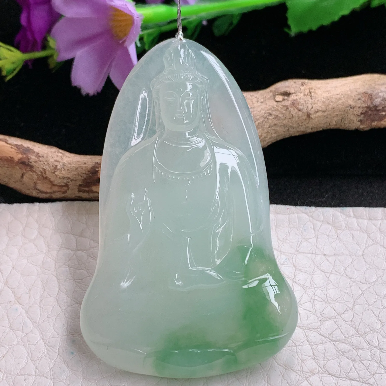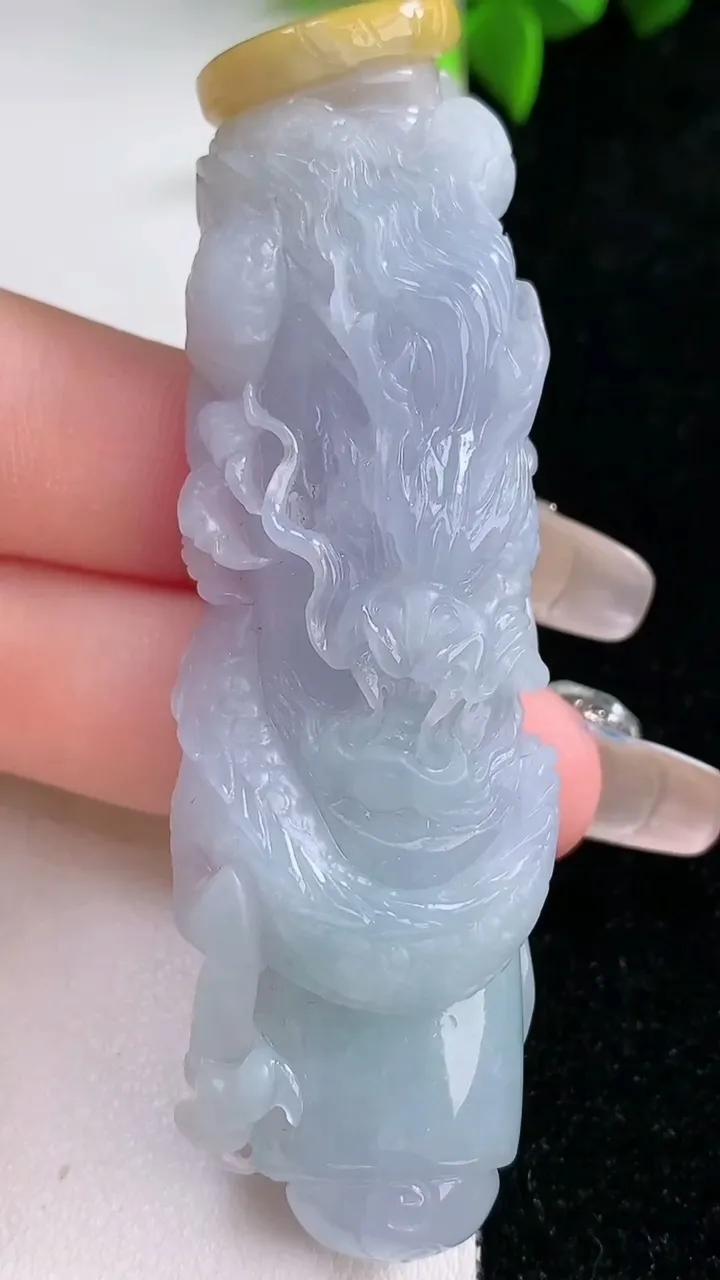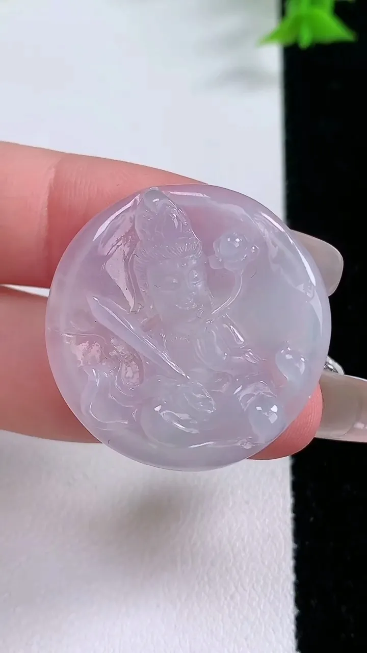 冰润飘花普贤菩萨吊坠 尺寸50.9*23.7*5.5mm 水头好,料子细腻,莹润通透,飘花灵动,佩戴效果好#02