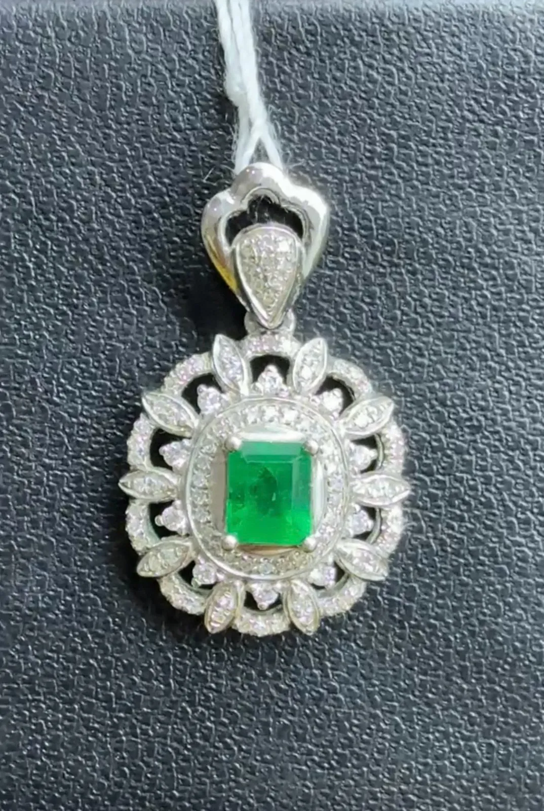 18k金钻石镶嵌天然祖母绿吊坠,尺寸22*13.9mm,重量2.5g