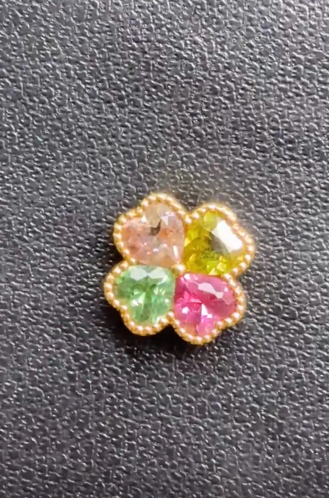 18k金镶嵌天然碧玺吊坠,尺寸8.9*8.8mm,重量0.866g