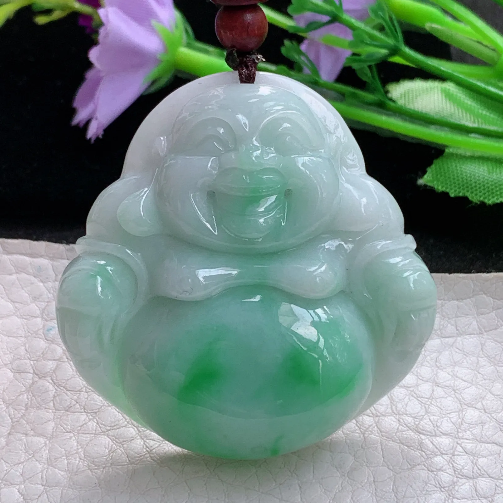 zen实拍49*48*12.5缅甸翡翠精美飘绿大佛公 弥勒佛玉项坠 毛衣坠