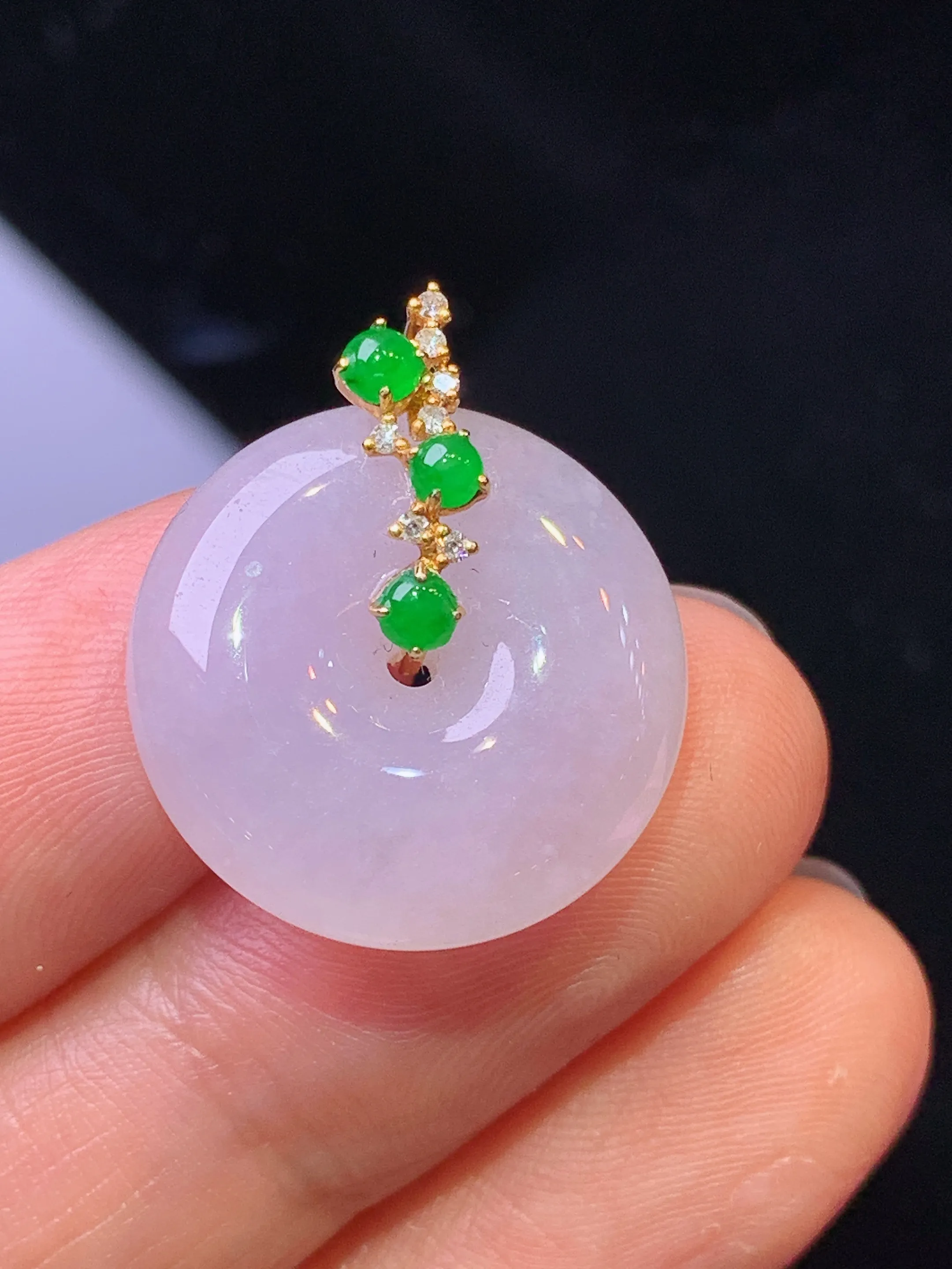qxm实拍53*11缅甸翡翠精雕满绿大平安扣 大绿扣玉吊坠 玉挂件