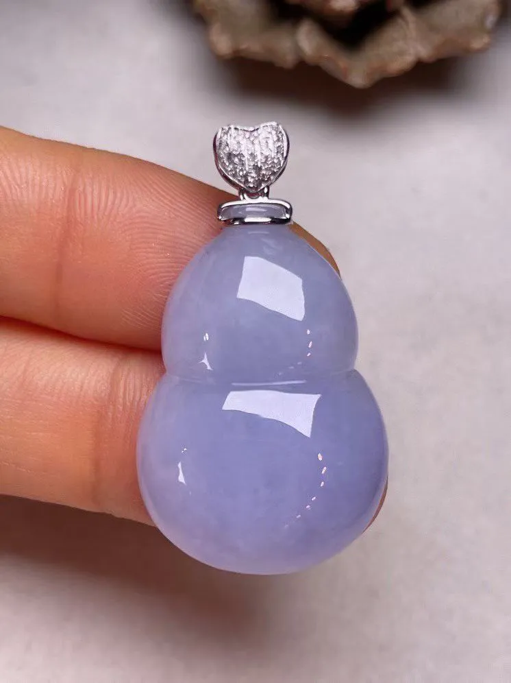 冰糯种紫罗兰葫芦吊坠、真金真钻镶嵌,种水好,玉质细腻 .裸石尺寸 29.3*28.5