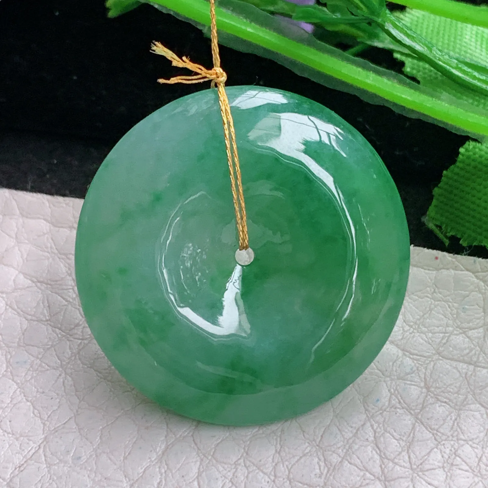 ws实拍31*6.8缅甸翡翠精雕饱满大平安扣 玉扣玉吊坠 玉挂件