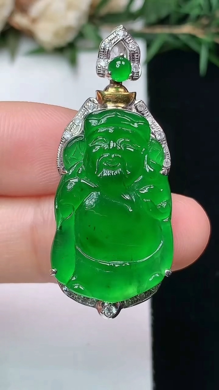 天然A货翡翠财神爷吊坠,尺寸38.9-24.9-15.9-7.3,重量:6.21g 4月13日