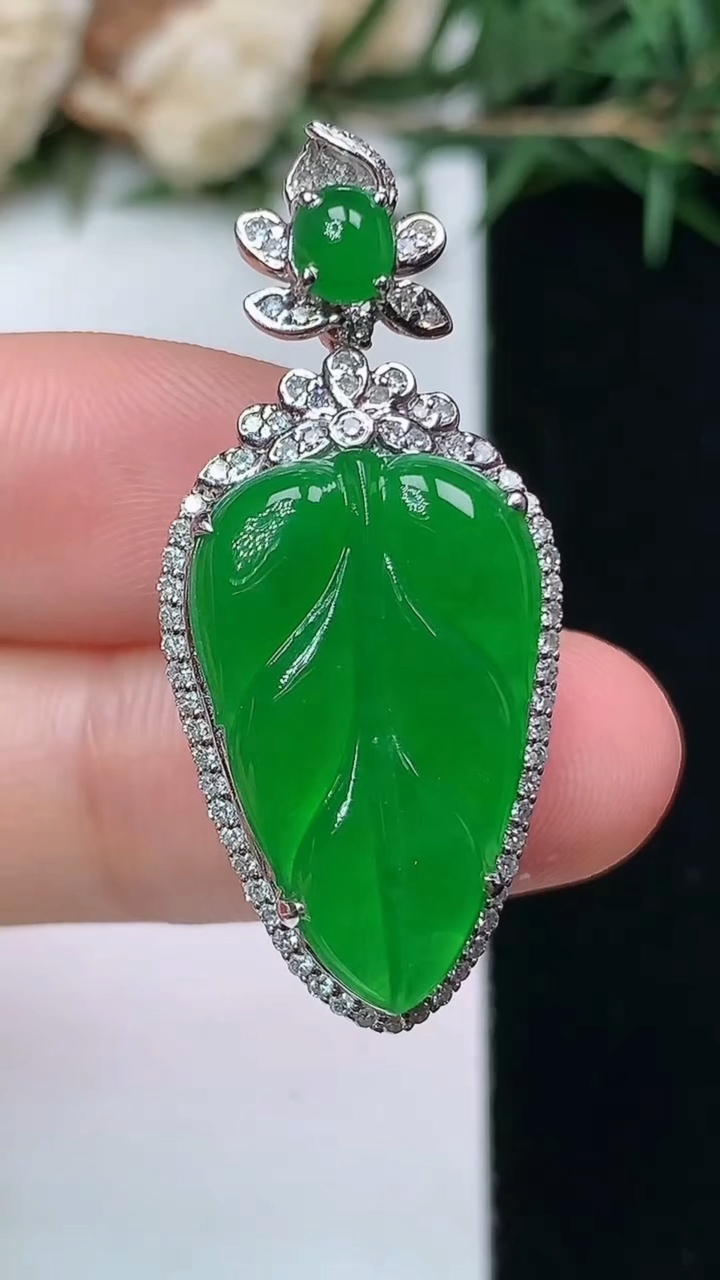 天然A货翡翠金枝玉叶 叶子吊坠,尺寸35.8-16-8.8,裸石21.5-13.5 4月13日,重量