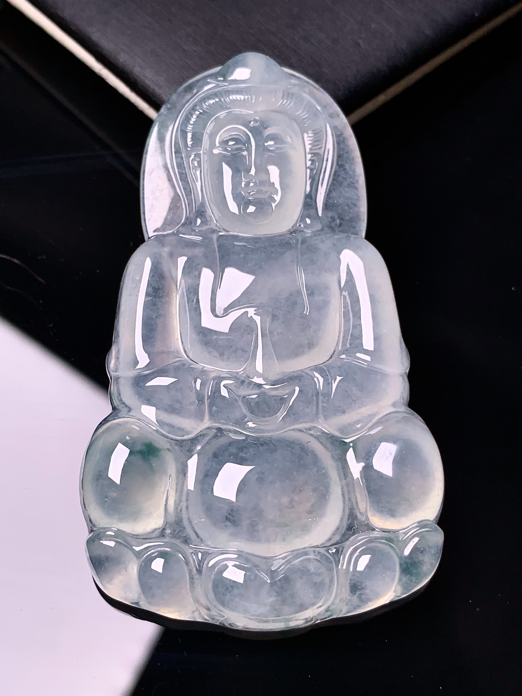 冰种观音菩萨吊坠 玉质细腻 色泽艳丽清新 水润亮眼 整体尺寸60.5*35.3*6.3c1