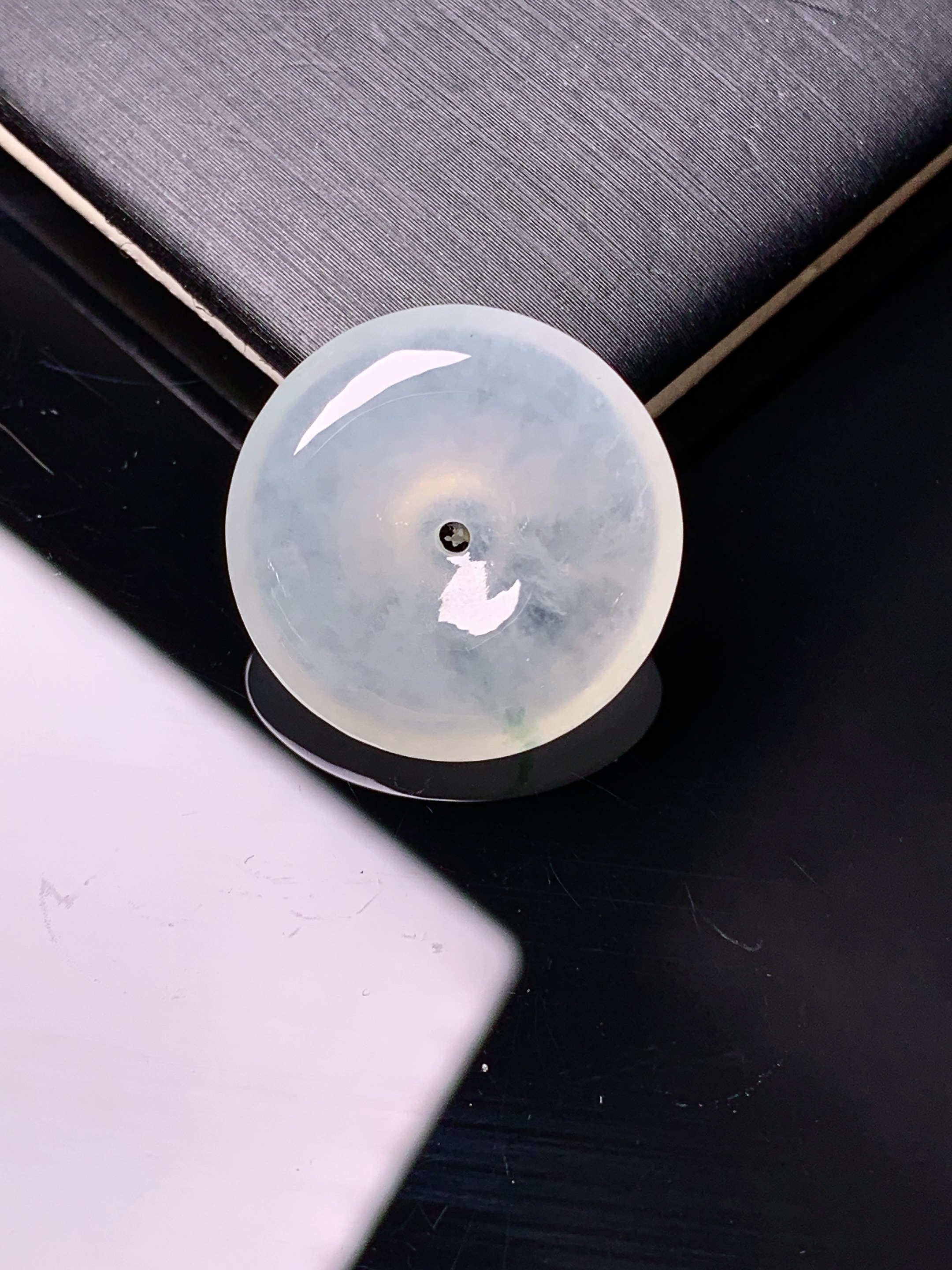 冰种平安扣吊坠 玉质细腻 色泽艳丽清新 水润亮眼 整体尺寸20*5.5c1