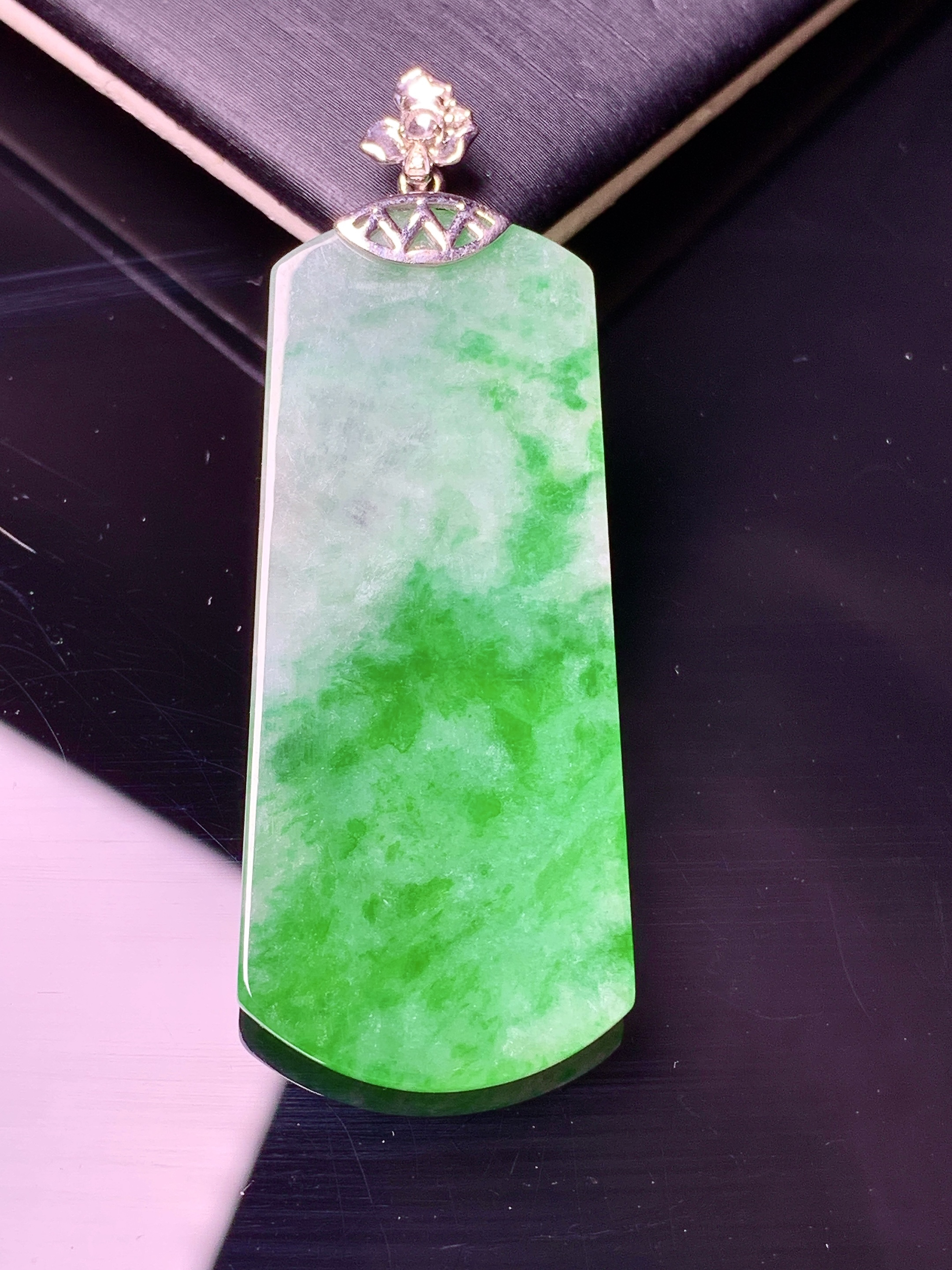 18k金钻镶嵌吊坠 玉质细腻 色泽艳丽清新 水润亮眼 整体尺寸51.6*18.6*2.5c1