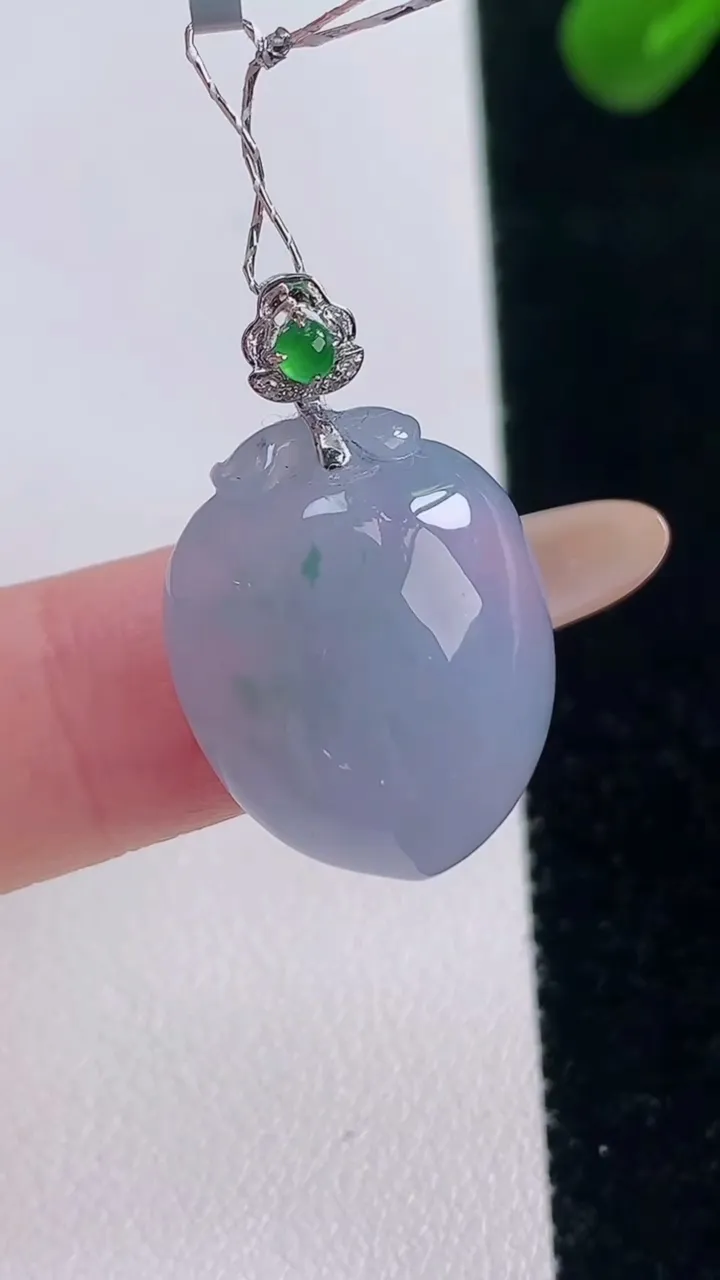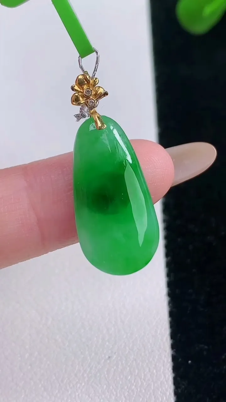 自然光实拍,冰润飘绿翡翠路路通吊坠,寓意时来运转、财源滚滚,款式新颖时尚,日常百搭的款!配图银链#0
