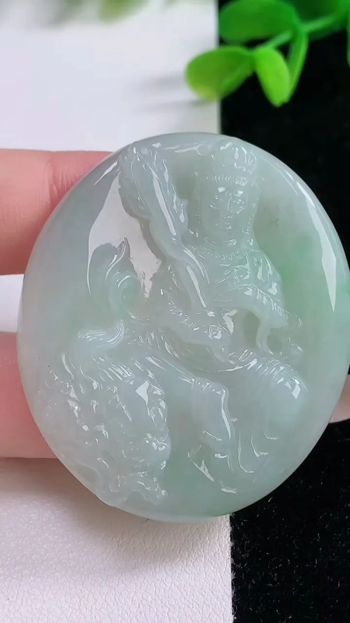天然A货翡翠文殊菩萨吊坠,尺寸48.4-42-5,重量:23.30g 11月21日