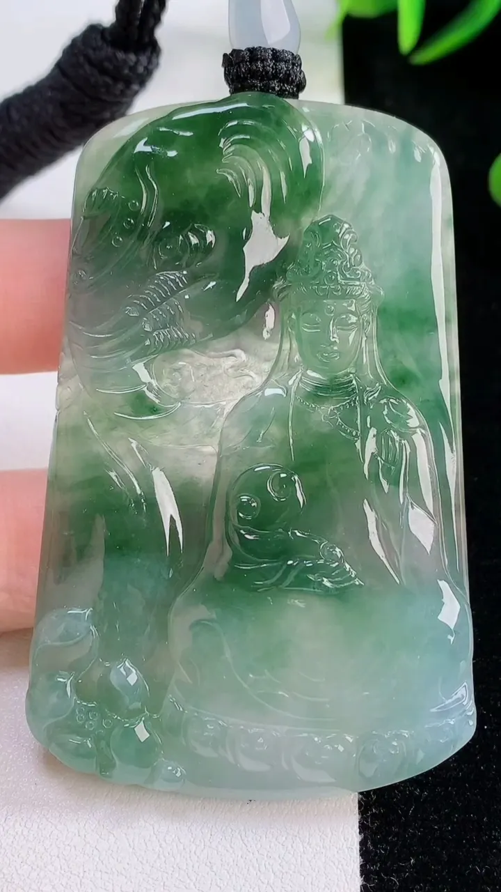 天然A货翡翠种飘花千手观音吊坠,尺寸66.2-10.6-5.2,重量:37.57g 11月24日