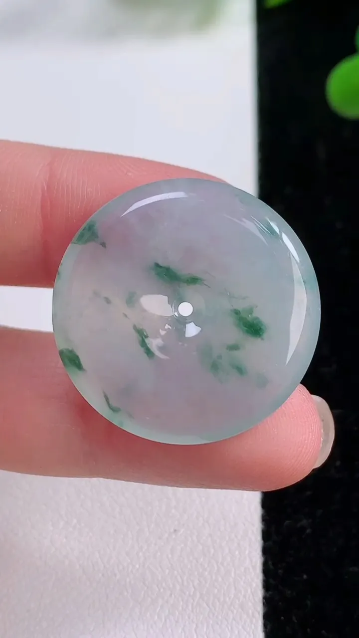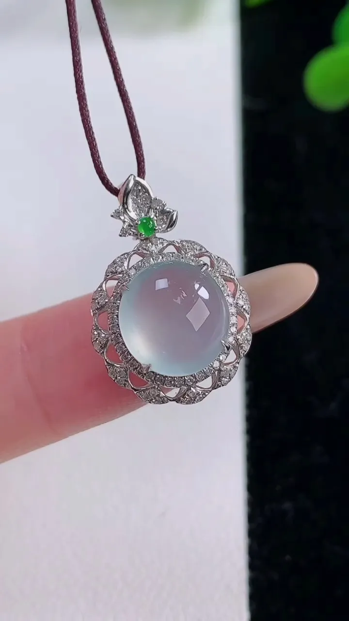 天然A货翡翠种白冰蛋面吊坠,尺寸22.2-15.4-8.2,裸石10.4-9.7重量:2.32g 1