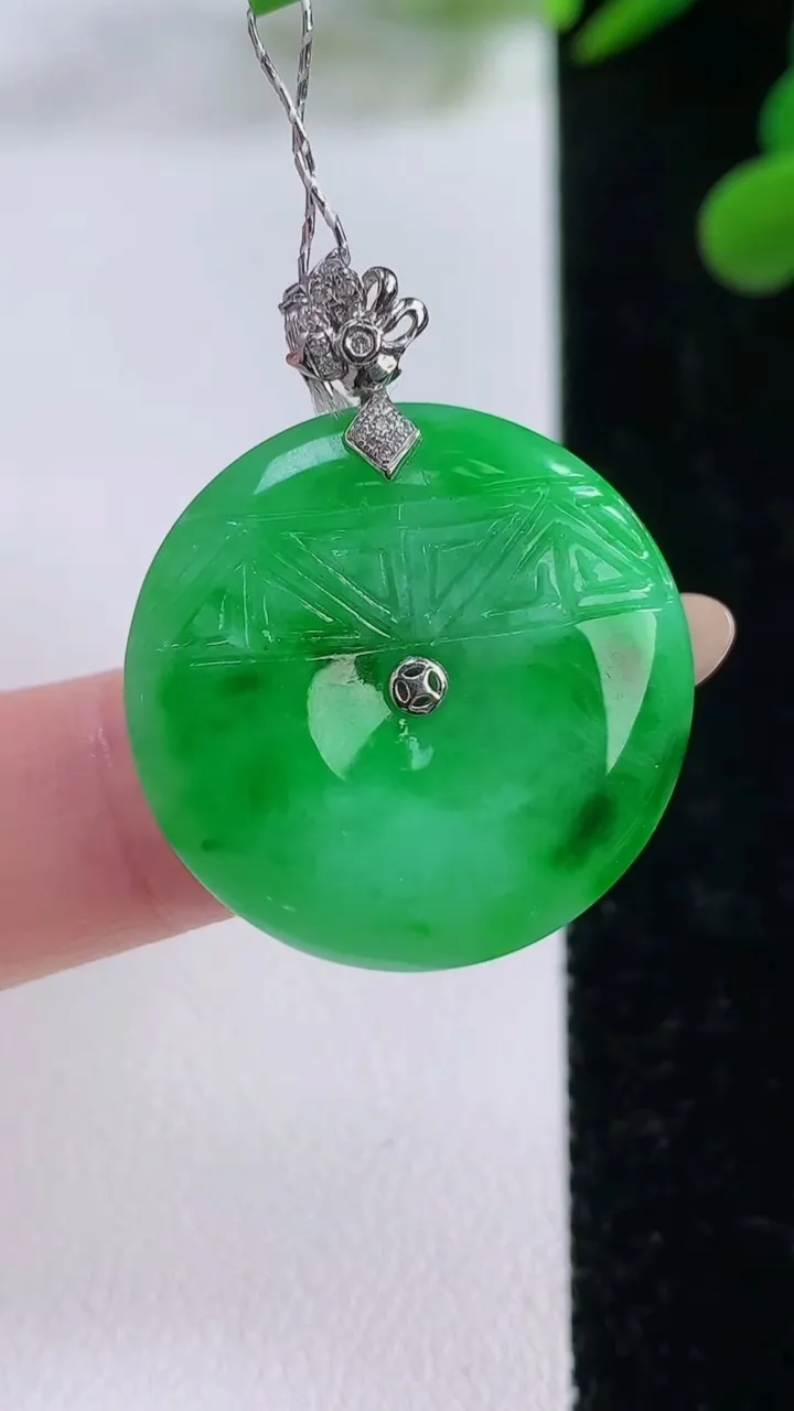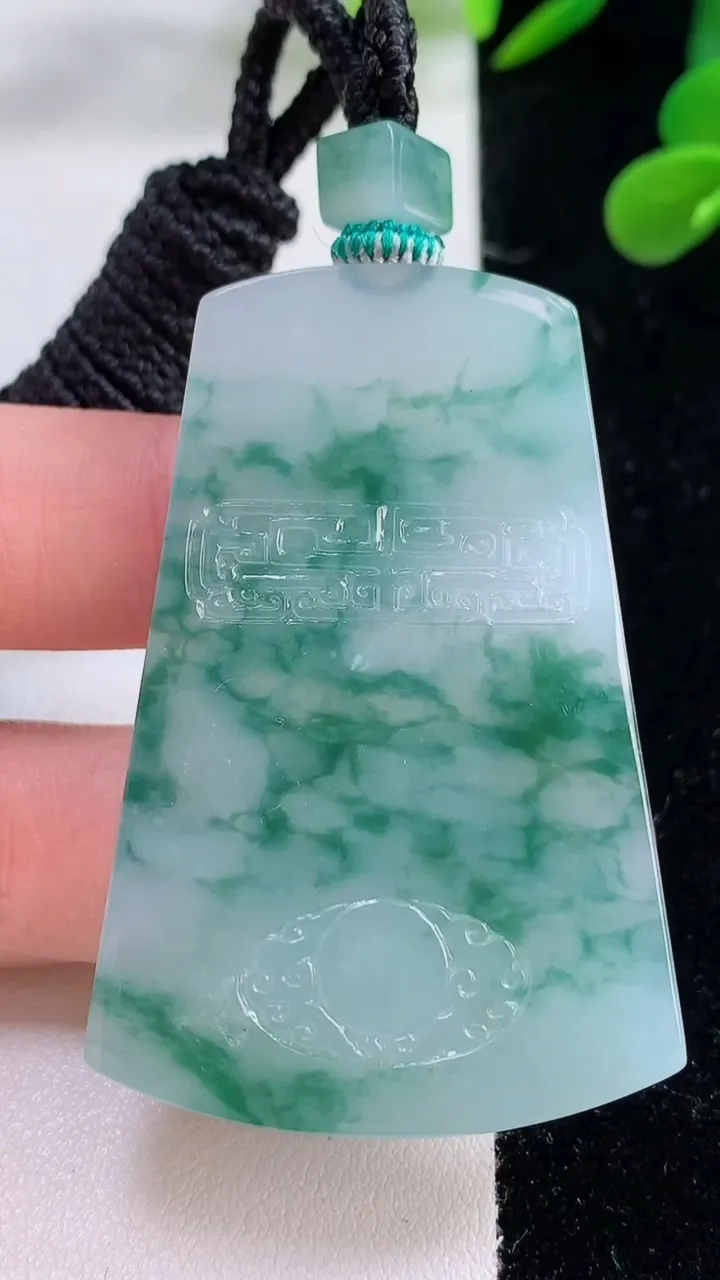 天然A货翡翠种飘花仿古无事牌吊坠,尺寸53.3-34.8-5.7,重量:33.20g 11月25日