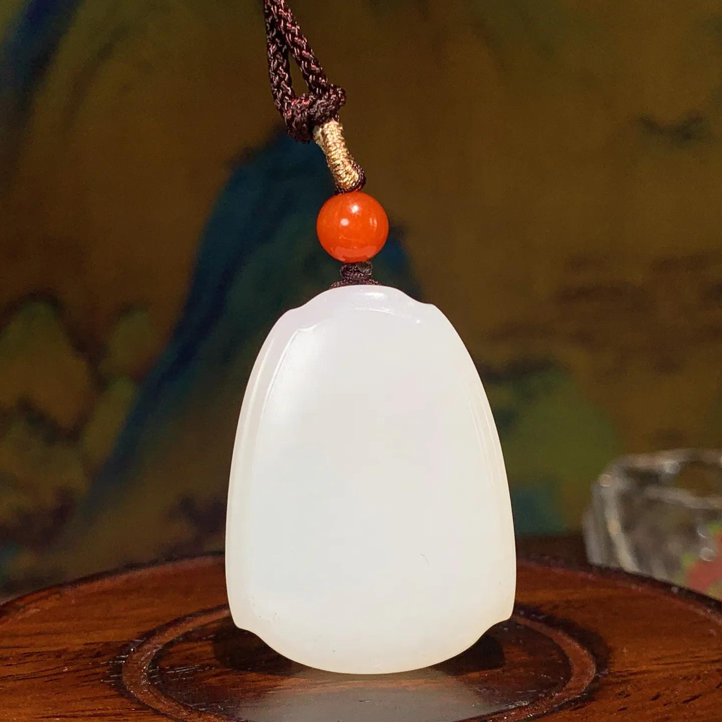 和田玉白玉平安无事牌挂件。尺寸37/28/11重26克。玉质细腻油润。手推出油。品相大气。lt251