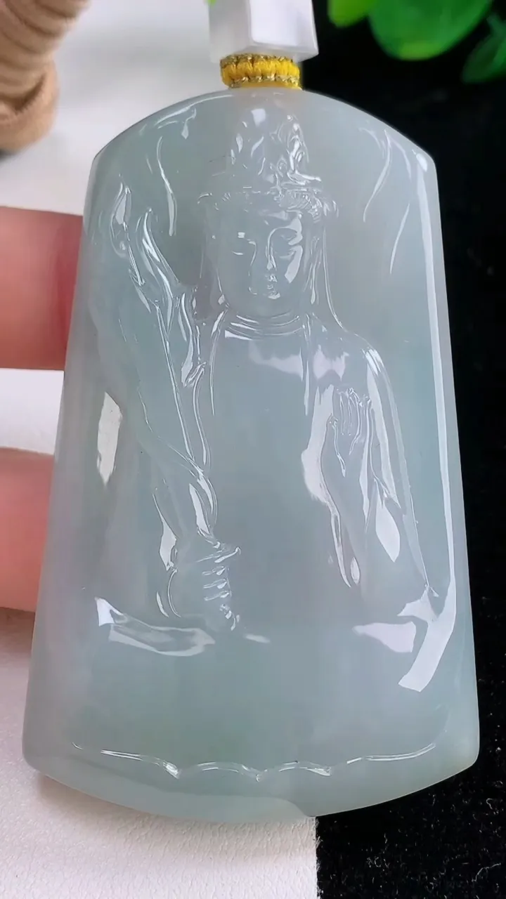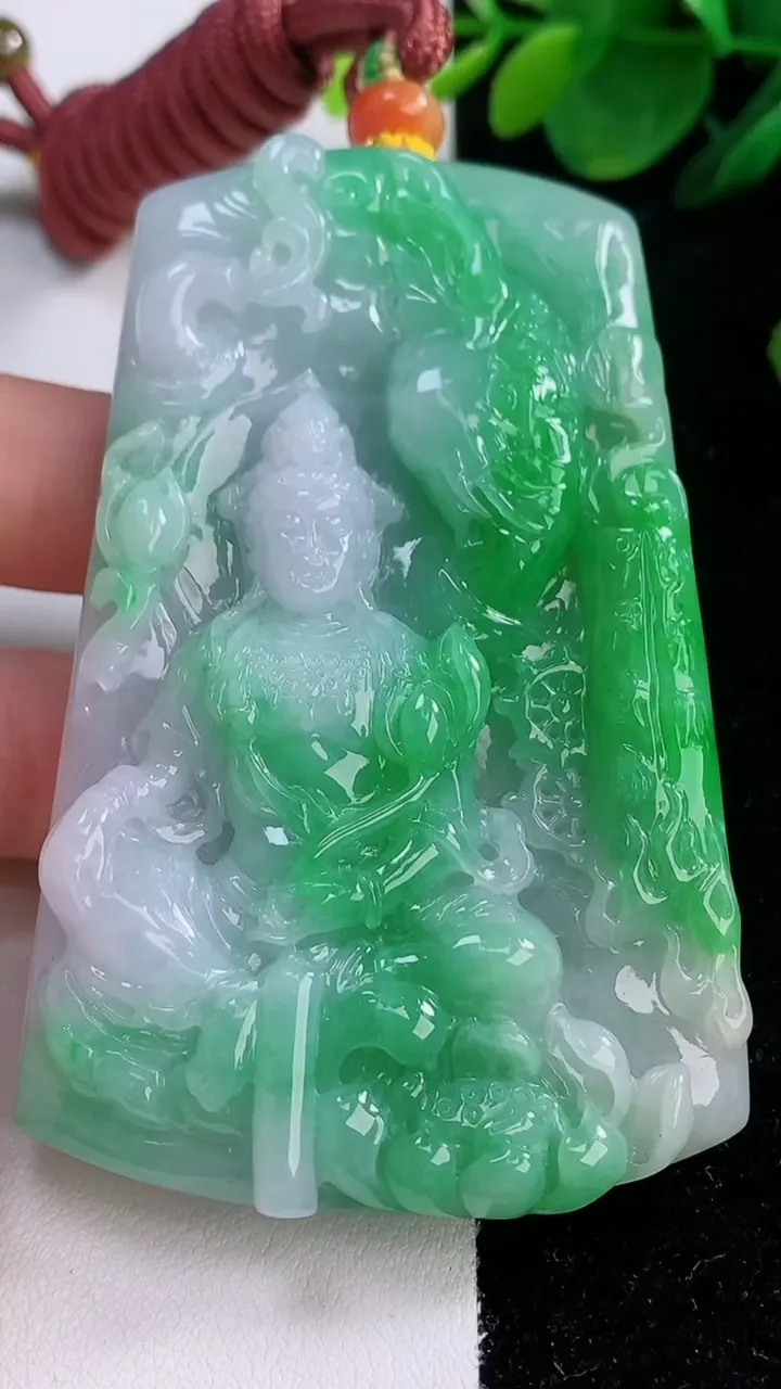 天然A货翡翠文殊菩萨吊坠,尺寸68.2-41.6-8,重量:58.85g 12月7日