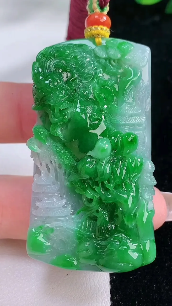 天然A货翡翠山水牌吊坠,尺寸55.2-27.7-12,重量:47.24g 12月7日