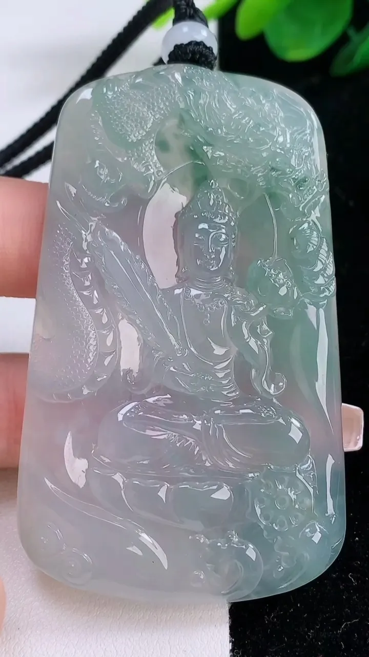 天然A货翡翠种飘花祥龙虚空藏菩萨吊坠,尺寸70-42.5-5.8,重量:43.54g 12月7日