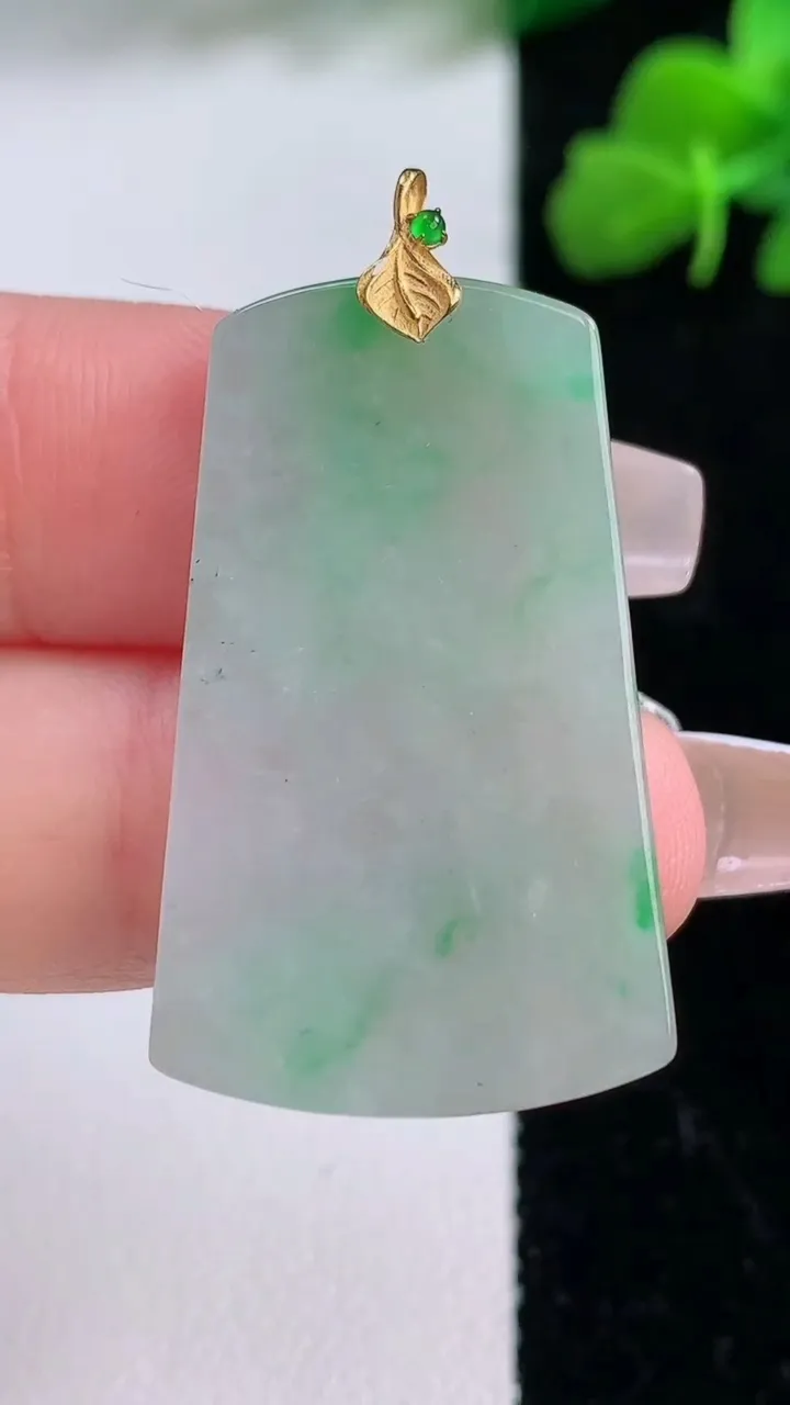 天然A货翡翠无事牌吊坠,尺寸39.6-19.3-3.9,重量:8.75g 12月9日