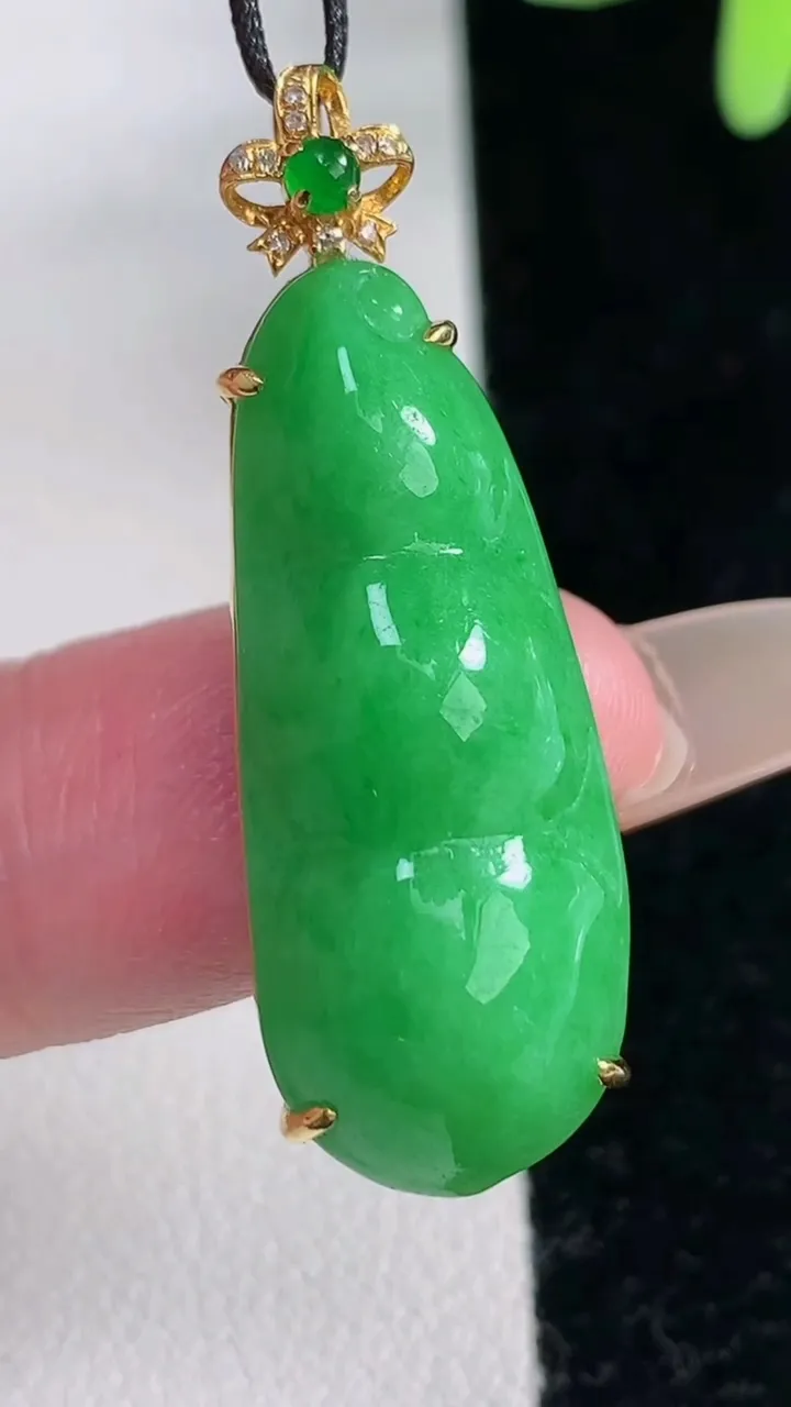 天然A货翡翠福豆吊坠,尺寸37.7-30.8-12.8-7.8,重量:5.32g 12月12日