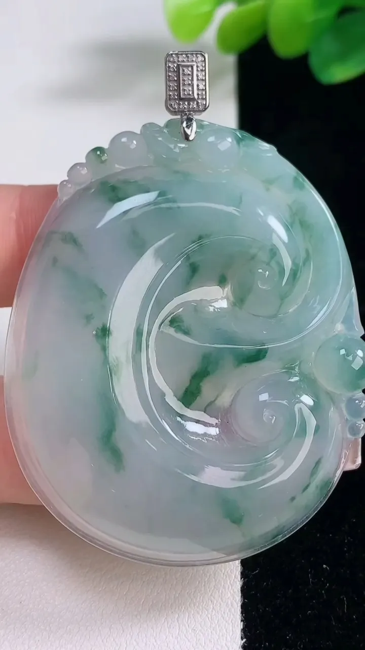 天然A货翡翠无事牌吊坠,尺寸53.8-45.5-5,裸石39.5,重量:11.79g 12月13日