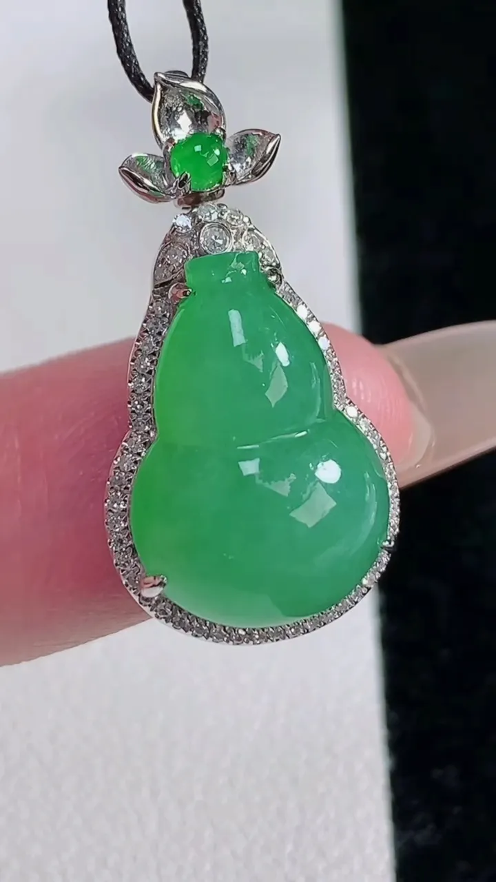 天然A货翡翠葫芦吊坠,尺寸27-13.8-9.5,裸石17-12重量:4.10g 12月12日