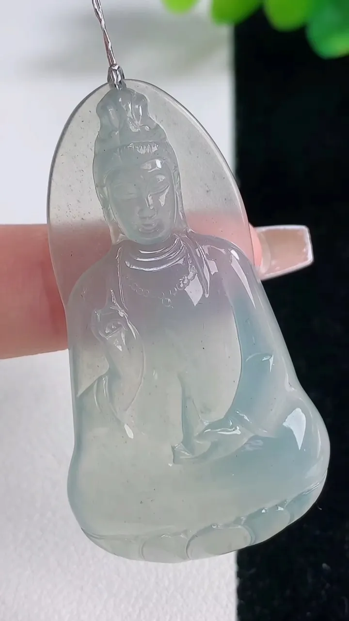 天然A货翡翠佛公吊坠,尺寸46.2-38.5-11裸石25.8-33.7,重量:18.03g 12月