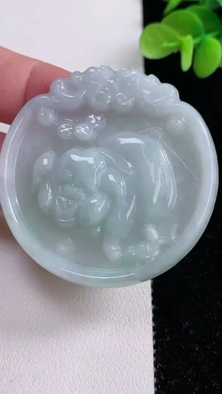 天然A货翡翠生肖猪吊坠,尺寸50.8-49.3-6,重:22.71g 12月14日